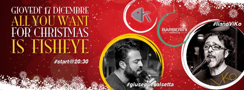 Per questo la nostra redazione vi suggerisce vivamente di festeggiare, brindare e scambiarvi gli auguri o i regali di Natale con i vostri amici, Giovedì 17 Dicembre, con un'Apericena che rievoca i fasti, i sapori e la tradizione della Cena della Vigilia, quella del Fish Eye Mood, sia per le scelte enogastronomiche assolutamente stellate, ma soprattutto perché si tratta di un aperitivo che si trasforma in apericena esclusivamente a base di pesce e bollicine, servita nel cuore del centro storico di questa Roma luccicante e natalizia, presso l'altrettanto suggestiva e natalizia atmosfera della Barberini Terrace, con il maestro Liano ViKo al pianoforte e Giuseppe Salsetta alla voce.